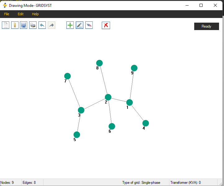Insert your power distribution grid data in an interactive way through Gridsyst's drawing mode. Draw your nodes (poles), and edges (conductor) and input distances, loads, etc.